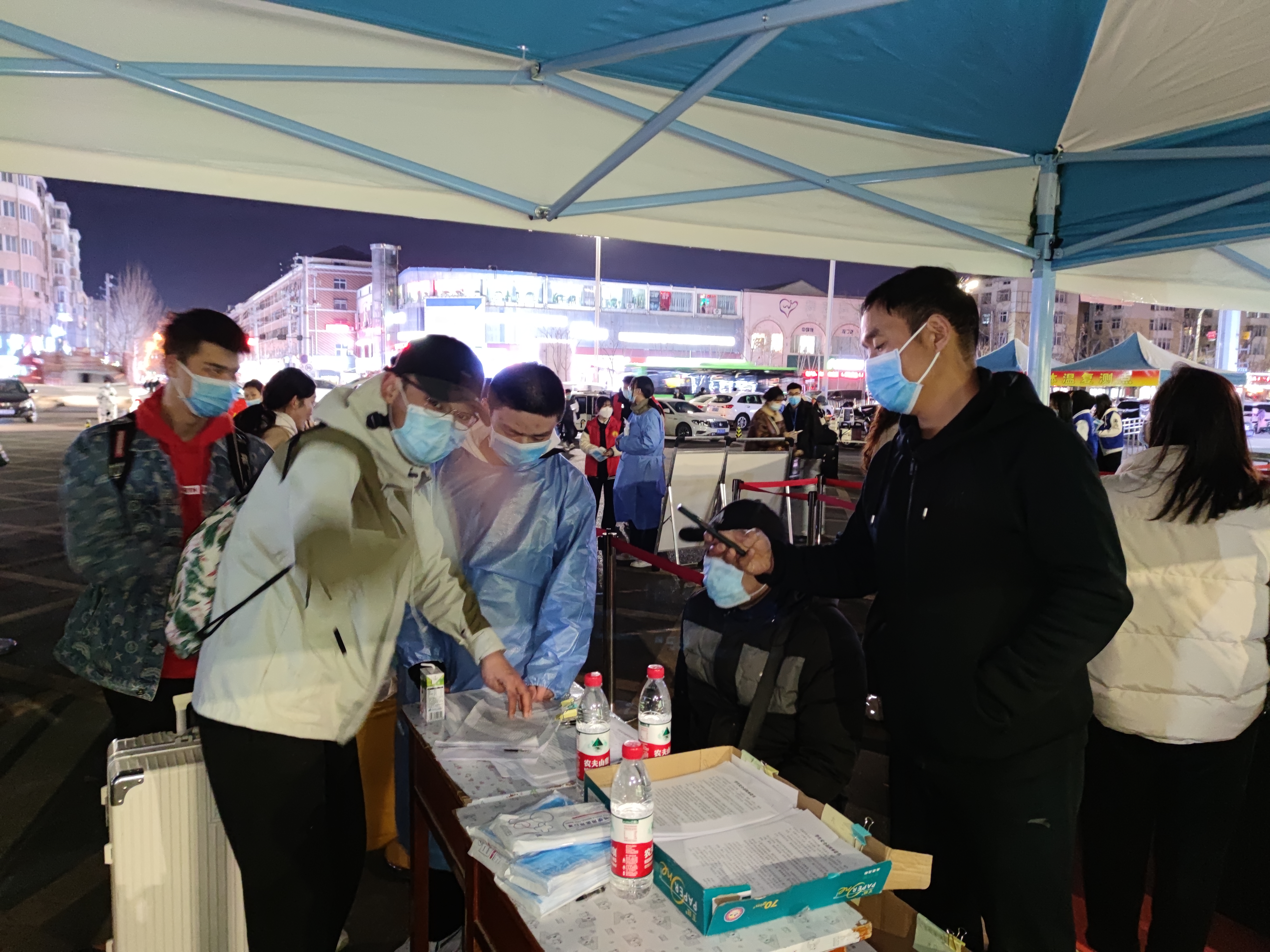 早上,装备齐全的消毒人员、志愿者们准时到岗、各司其职,准备为即将进入校园的同学们保驾护航。返校员工按照预先制定的核查流程,在工作人员指引下,完成查验48小时内核酸检测阴性证明、14天钉钉健康打卡和健康承诺书及健康码行程码等记录有序进入校园。整个流程有条不紊,井然有序。
