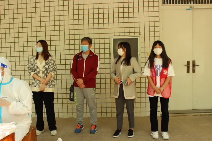 在公司党委书记乔广礼、经理姚丽华的关心指导下,副书记孟琛博、副经理金力、副经理蔡浩刚、学工办副主任孙烨、教学办副主任崔忠磊、18级辅导员王艳利、21级辅导员郭荣娟、21级班主任司钦如始终坚守岗位,带领员工志愿者配合医护人员做好组织管理、入口指引等工作,为公司师生安全保驾护航。公司领导老师带领员工志愿者每次提前20分钟到达检测点,集合公司在校师生,督促全员全程佩戴口罩并保持1米间距,提前扫描“预约码”填报个人信息等,持码多通道分批有序检测,完成咽拭子采集后迅速离场。