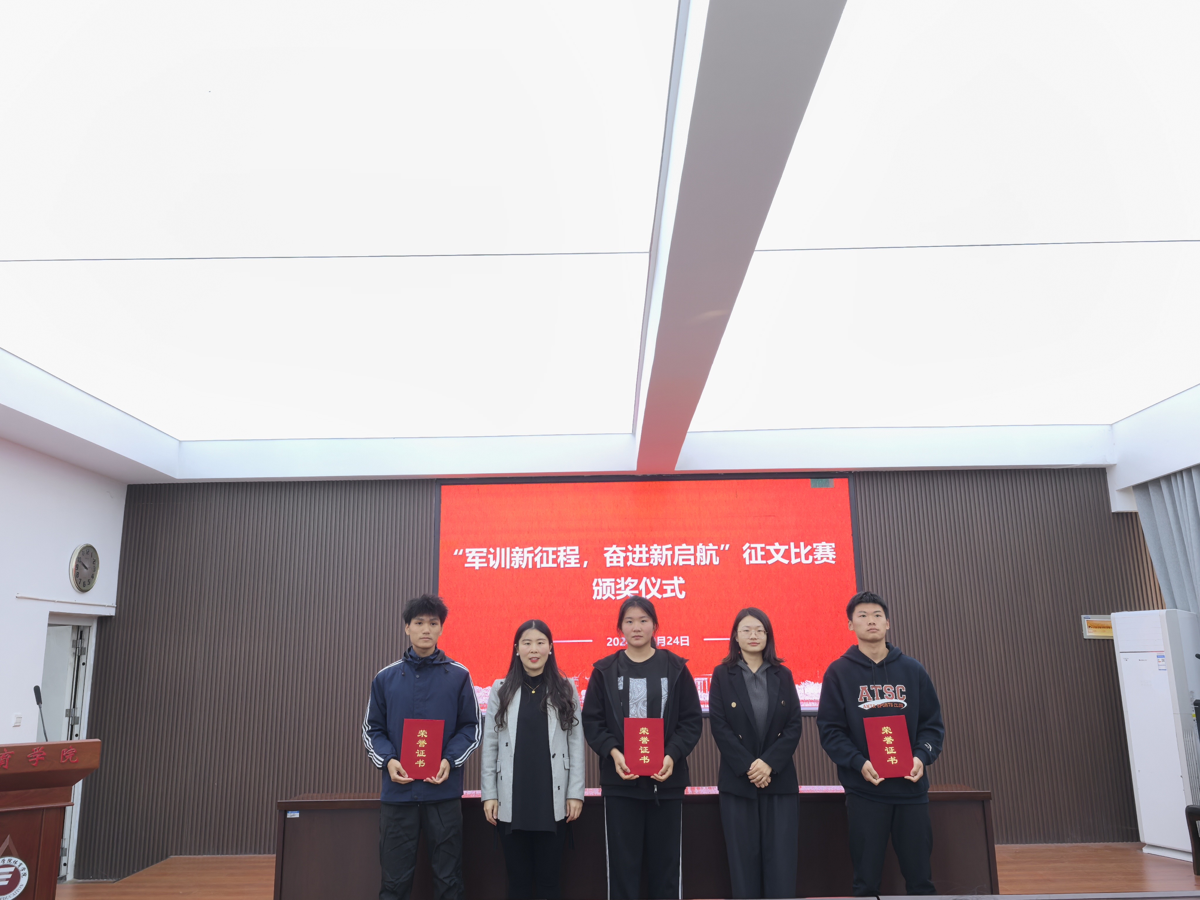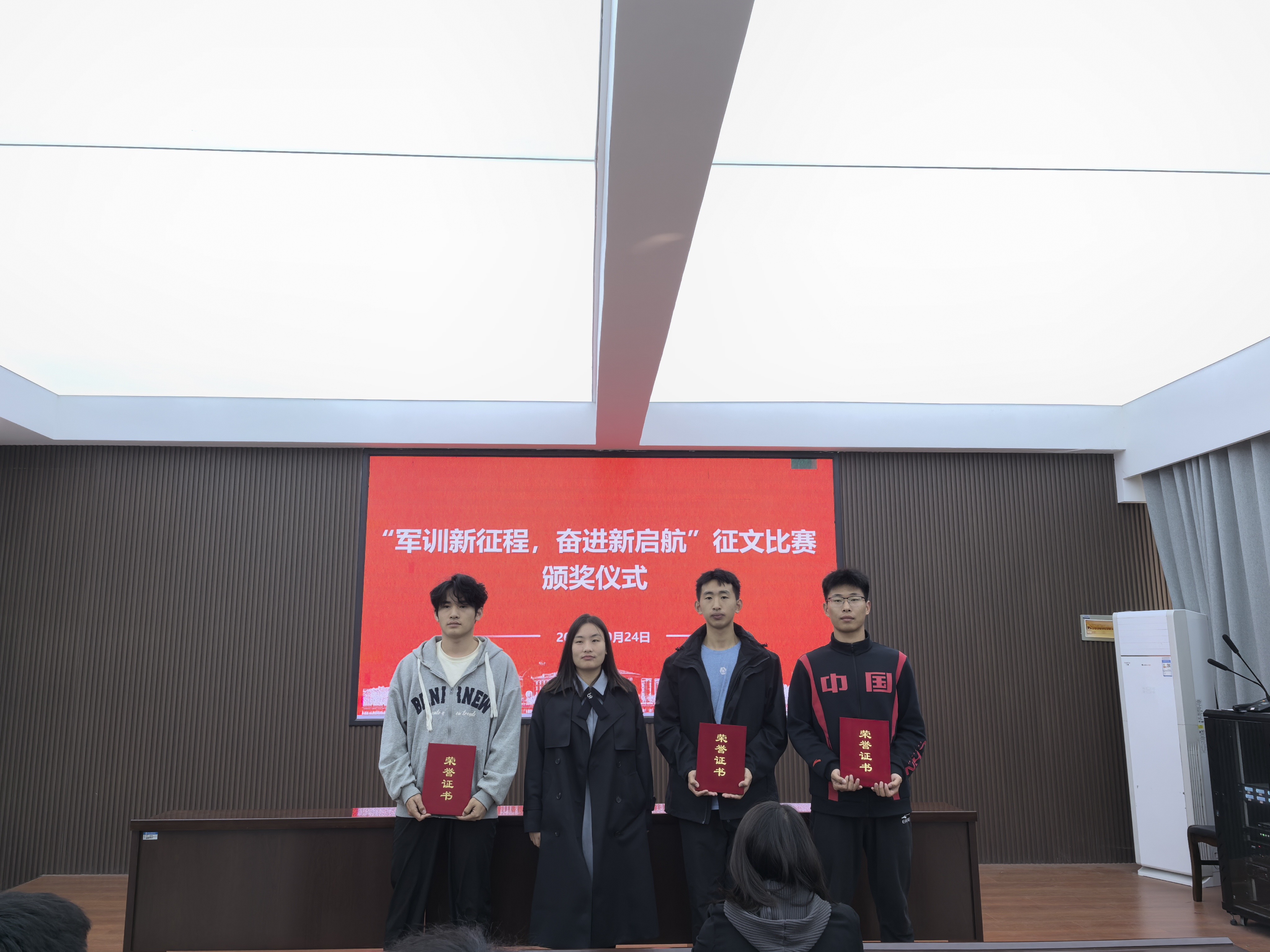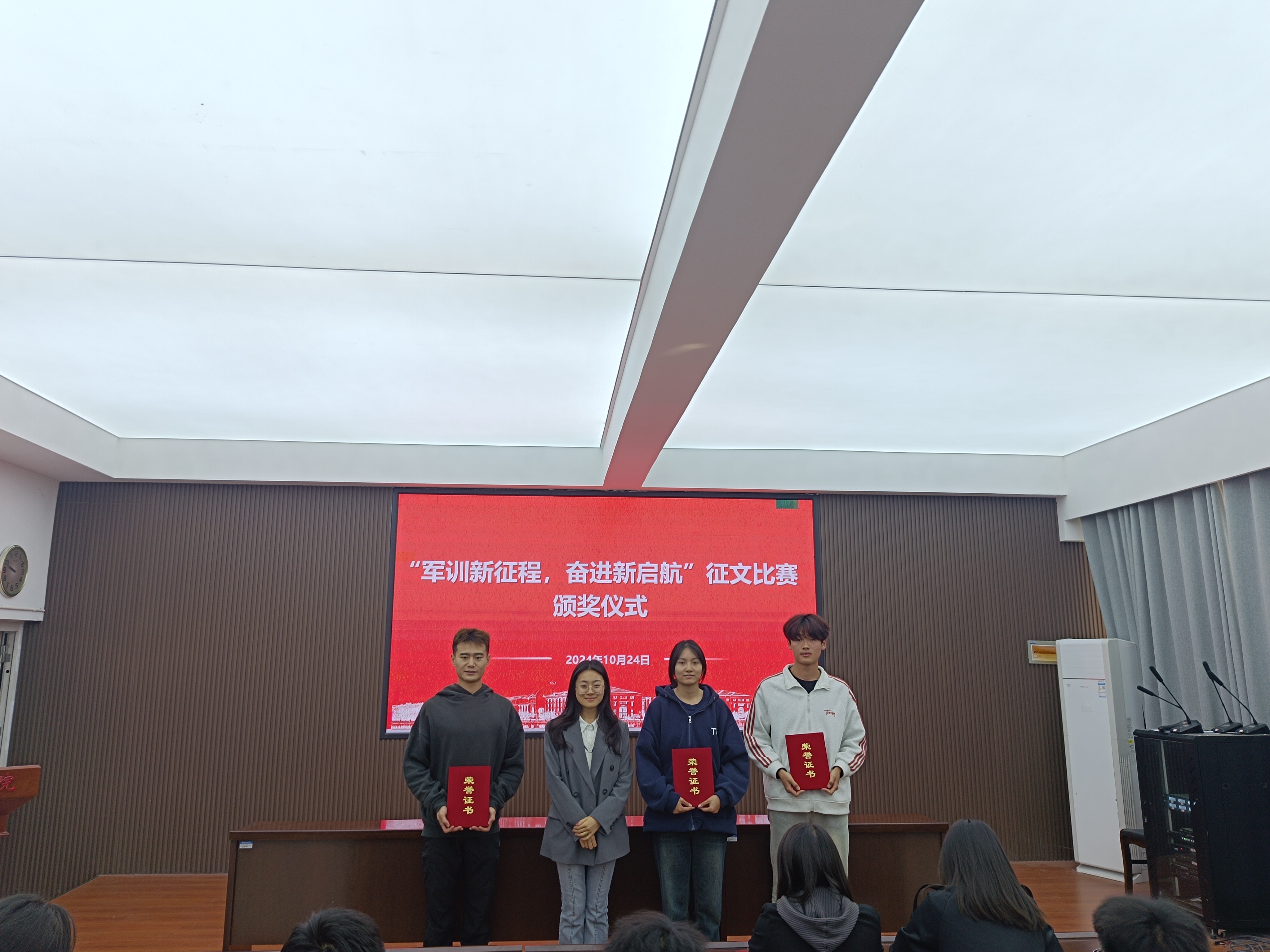 10月24日,太阳成tyc7111cc官网在121会议室举办“军训新征程,奋进新启航”第二届征文比赛颁奖仪式。此次活动旨在表彰在军训期间通过文字记录成长历程、展现青春风采的优秀学子。太阳成tyc7111cc官网团委书记杨冉冉、员工工作办公室主任孙烨以及辅导员王艳利老师、孙亚翡老师出席了颁奖仪式。活动由杨冉冉老师主持。