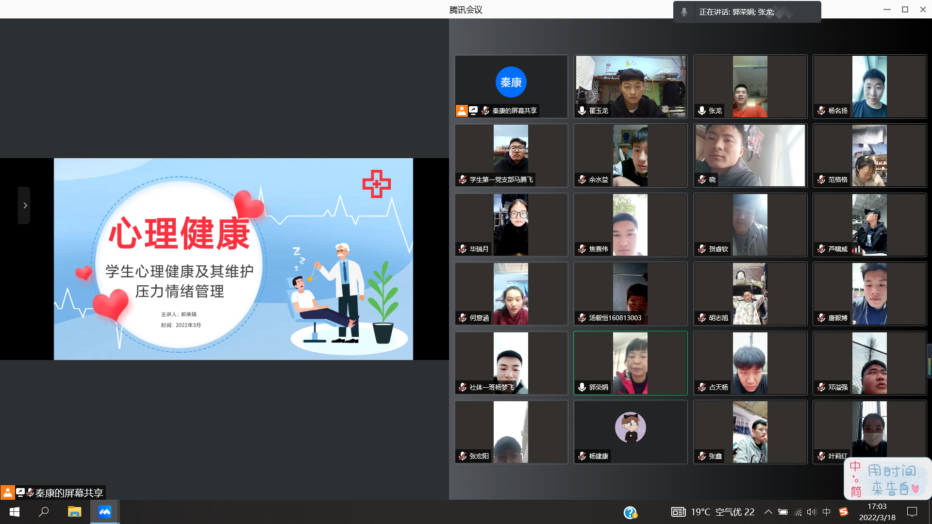 为积极应对新冠肺炎疫情,做好心理防护工作,增强员工的心理免疫力,太阳成tyc7111cc官网员工第一党支部书记郭荣娟近日开展线上心理健康讲座,为疫情封校期间员工们的心理健康保驾护航。
