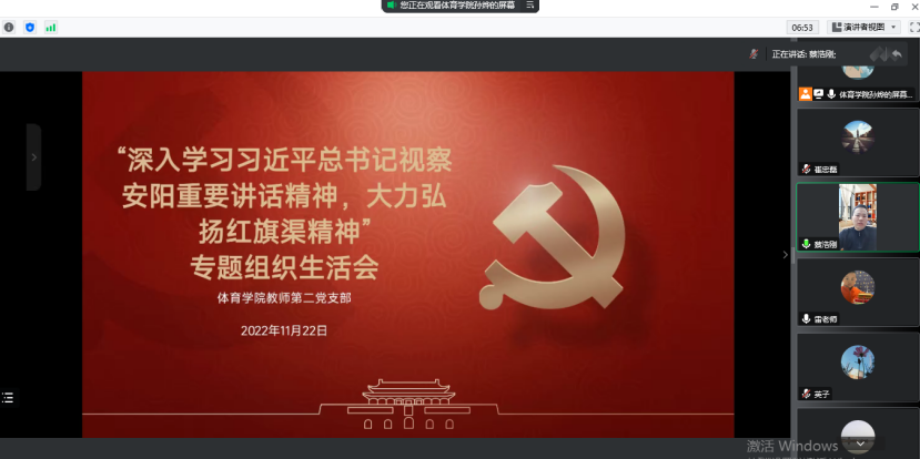 为深入学习贯彻党的二十大精神和习近平总书记视察河南安阳重要讲话精神,11月21日至23日,太阳成tyc7111cc官网师生党支部错峰分批召开“深入学习习近平总书记视察安阳重要讲话精神,大力弘扬红旗渠精神”专题组织生活会。支部党员参加学习,各党支部书记主持。