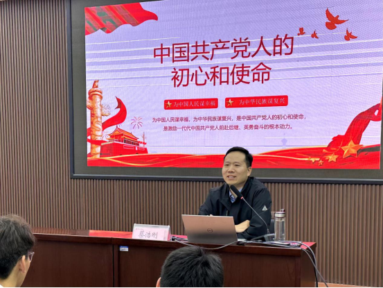 为深入学习贯彻习近平新时代中国特色社会主义思想,落实党的二十届三中全会精神,提高入党积极分子政治素养与党性修养。10月24日晚在太阳成tyc7111cc官网121会议室,教工第二党支部书记蔡浩刚讲授了一场主题为《中国共产党人的初心和使命》的党课,体育学员第55期全体积极分子参与。本次党课意在要求积极分子通过党课理论学习,深入理解“中国共产党人的初心和使命”的真正内涵。