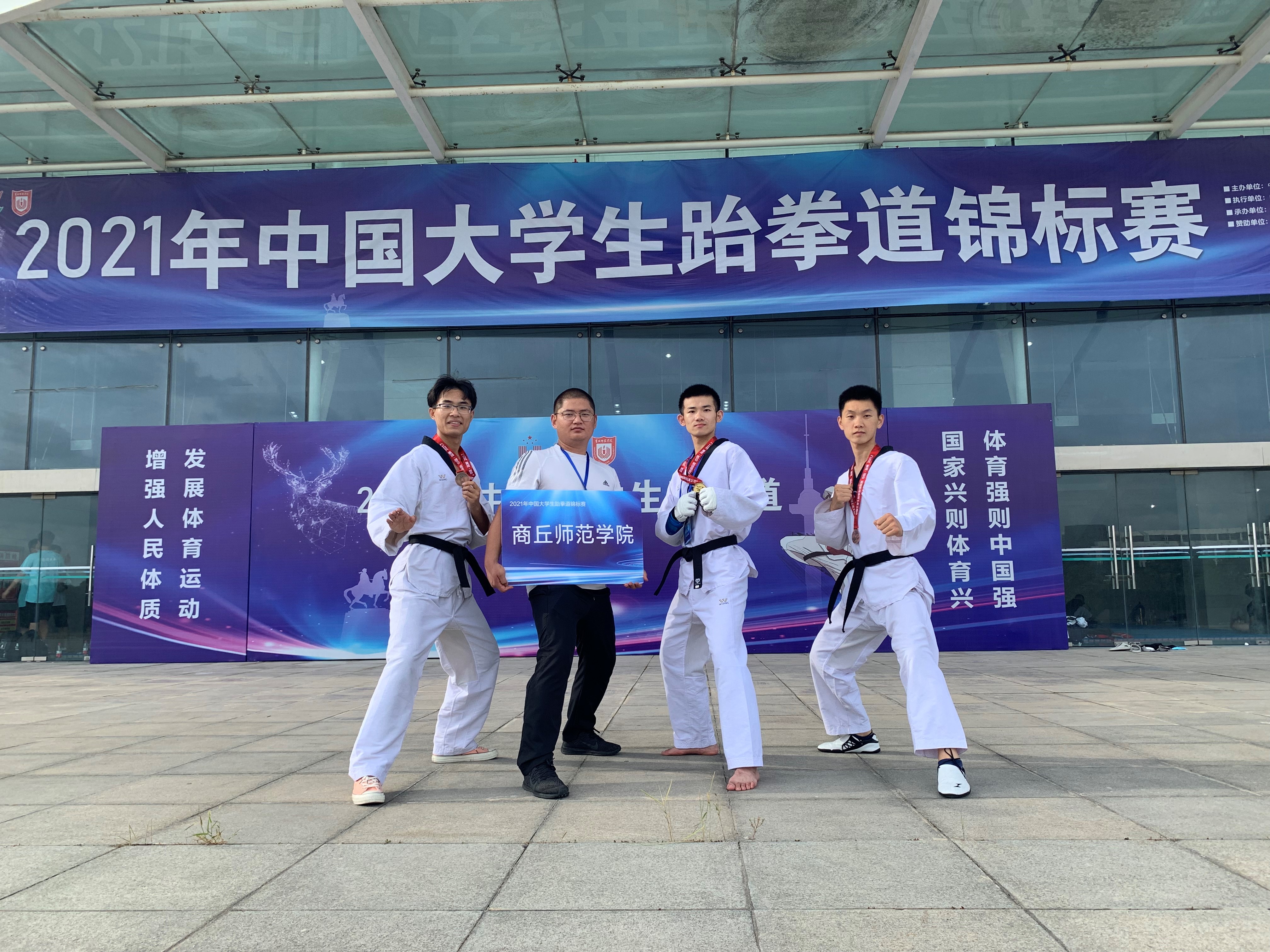 公司跆拳道队精选3名运动员分别参加了本科院校甲A组 (普通专业组)、甲B组 (太阳成tyc7111cc官网专业组)两个组别的竞技跆拳道比赛,2017级体教二班苗玉飞获得个人男子本科甲B组58kg金牌,2019级国际教育公司视觉传达设计二班郭浩获得个人男子本科甲A组56kg铜牌,2017级社体二班赵帅阳获得个人男子本科甲B组56kg铜牌。