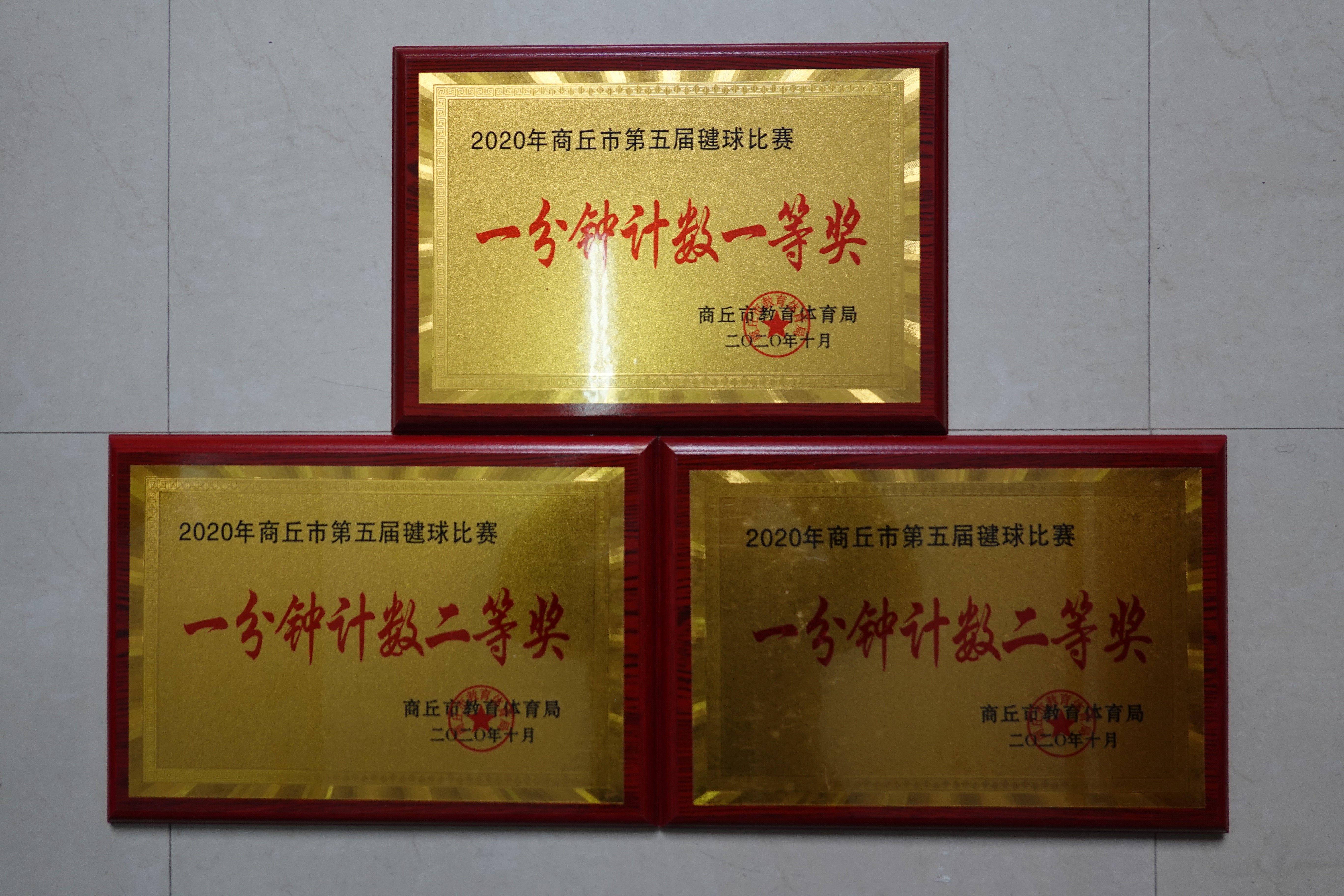 经过激烈拼争,取得的战绩如下:毛孟坤、王政凯、高志滨、闫格获得大白毽1分钟计数赛第一名,颁发一等奖证书和奖牌;刘燕、张姗、段巧凤、朱佳一获得大白毽1分钟计数赛第二名,颁发二等奖证书和奖牌;黄晨静、刘凯莉、赵佳蕊、刘虎彪获得大白毽1分钟计数赛第三名,颁发二等奖证书和奖牌。
