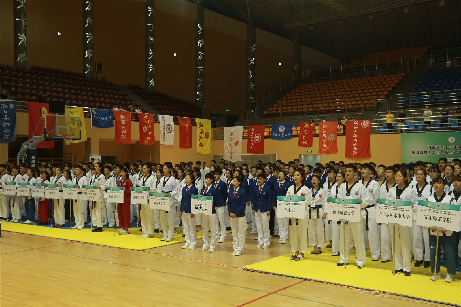本次比赛由河南省教育厅、河南省体育局主办,河南省员工体育总会跆拳道协会执行,商丘工公司承办,商丘市城乡一体化示范区社会事务局、商丘市跆拳道协会等单位协办。来自河南省36所高校的389名运动员参加了比赛。