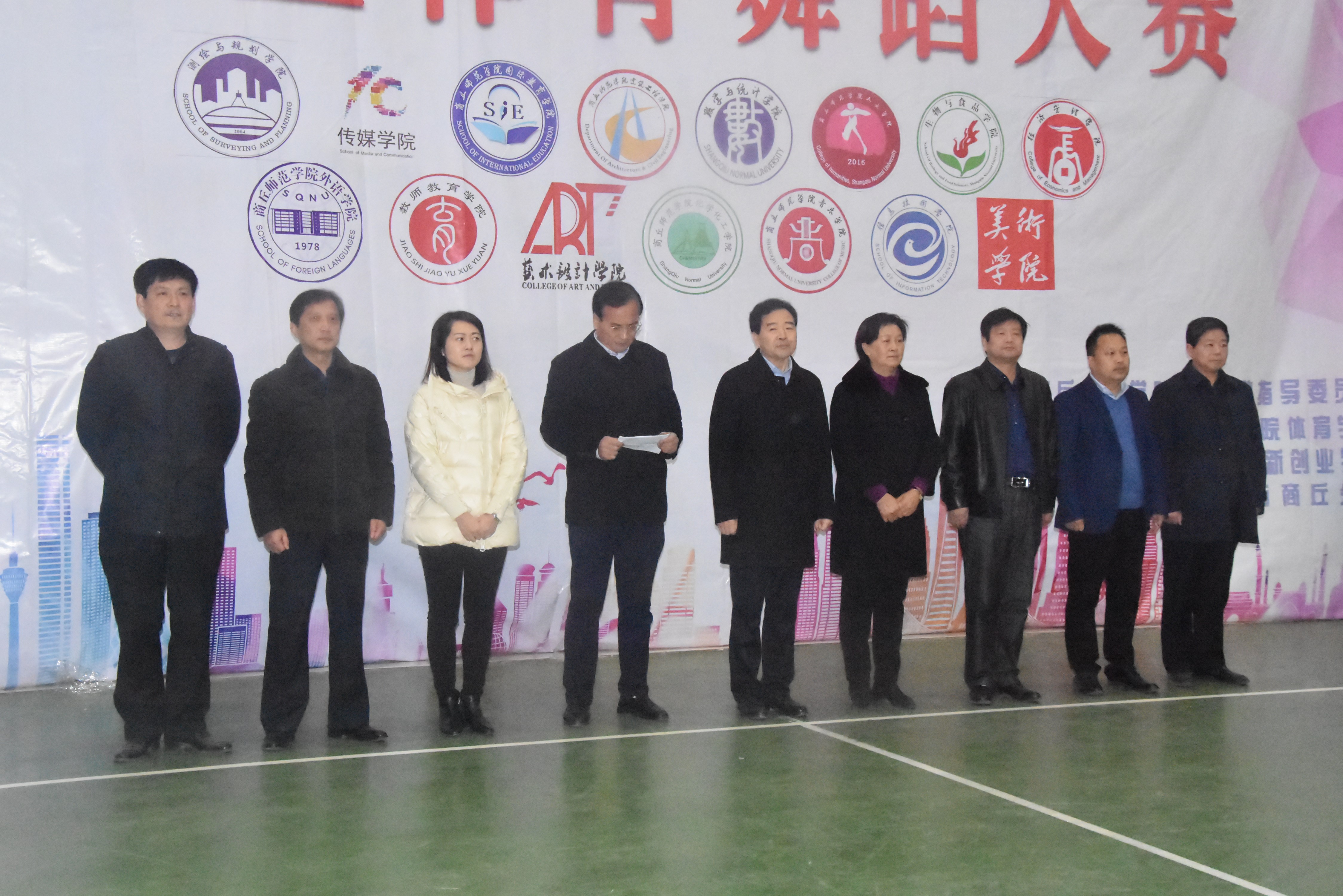 11月29日下午,“中国银行杯”公司第四届老员工体育舞蹈大赛在梁园校区篮球馆举行。副董事长陈向炜出席开幕式。