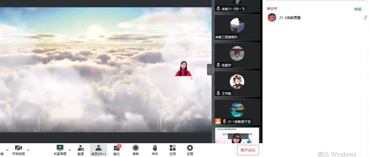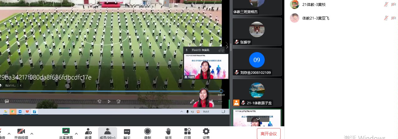 首先,耿爱秋老师先用文字的形式介绍了建校历史,地理位置等,让同学们对商丘市实验中学有了大致了解。从校风,校训,学风等方面进行了详细的讲解。老师专门做了关于健美操,歌唱舞蹈表演等比赛录像,方便向同学们展示校园风采,并以照片的形式让同学们看到了实验中学所获得的成就。耿爱秋老师在会议结束之际,对同学们发出真挚的邀请,期待疫情过后,大家能够在商丘市实验中学的校园中见面。