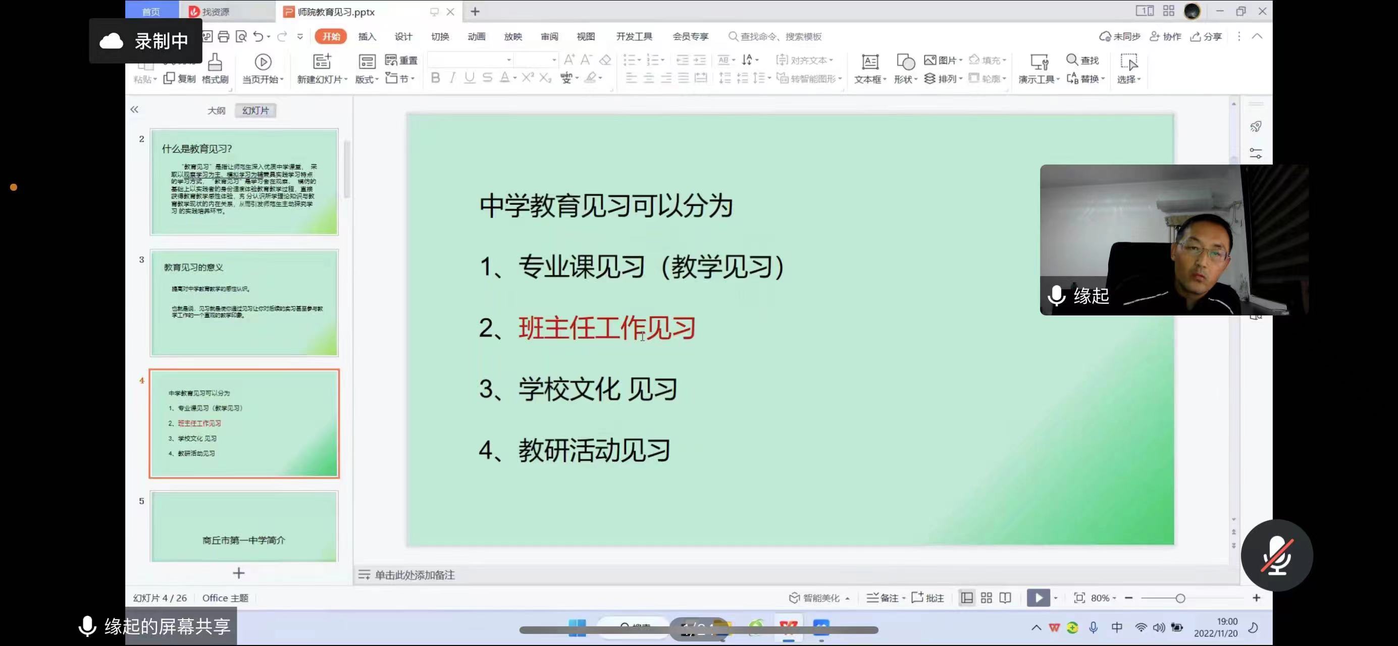 会议伊始,赵永健老师用文字的形式介绍了建校历史,用照片播放了商丘市第一中学在体育方面取得的成就。俗话说“一个人可以走得很快,一群人才能走得很远”,教师个人的专业化发展,离不开整个集体的研讨、分享,因此商丘市第一中学体育教研组组织了形式多样的教研活动和各种体育活动。通过赵永健老师对商丘市第一中学的介绍,对公司体育教学经验的分享,让同学们对商丘市第一中学的教育有了深刻认识。最后赵永健老师提出作为未来的体育教育事业接班人,应该积极参与体育教研工作,增长自己的体育教学经验,并为此付出行动和努力。
