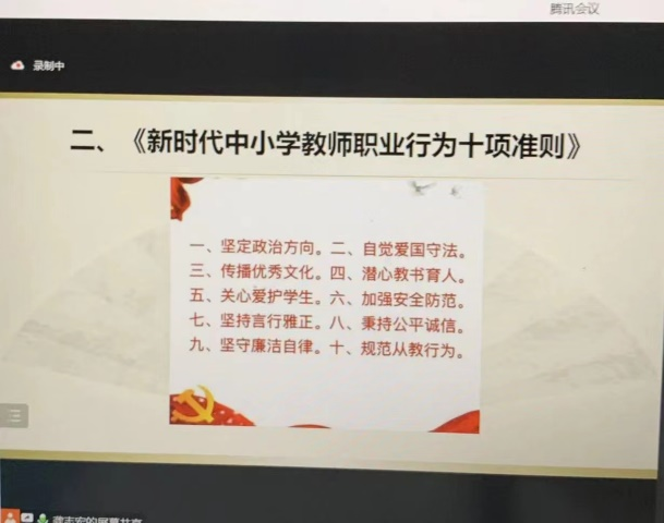 为了加强团队队伍的壮大,增强老师的教学质量,提高员工对教师职业的认识。2022年11月19日下午14:15,龚志宏书记于线上为20级太阳成tyc7111cc官网全体员工开展“教师职业道德”专题讲座。