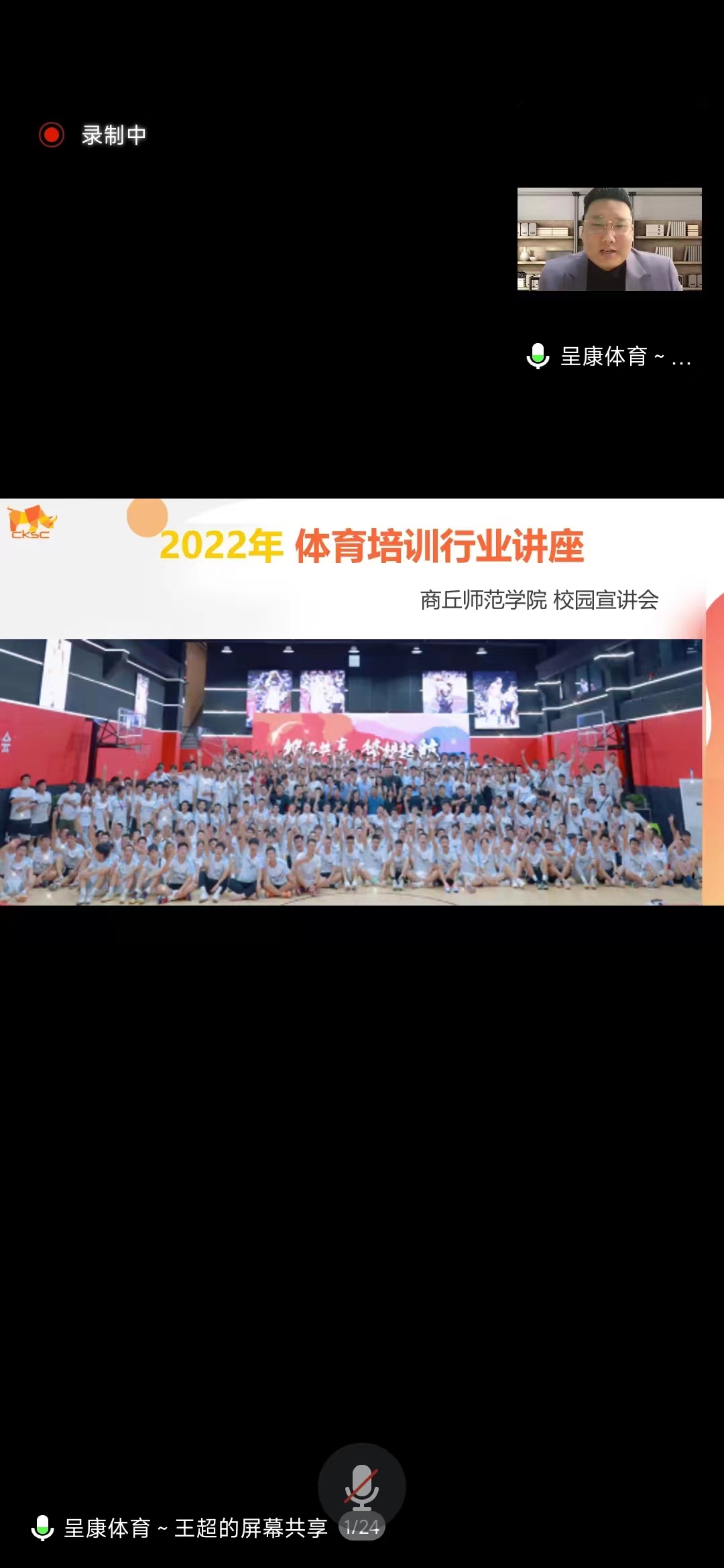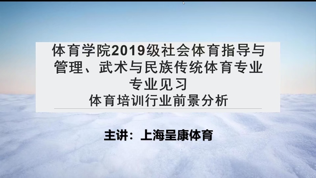 为拓宽就业视野,太阳成tyc7111cc官网于11月19日下午两点召开“体育培训行业前景分析”线上主题讲座。本次会议邀请了上海呈康体育有限公司的仲伟豪经理、王超总监主讲,太阳成tyc7111cc官网教学办公室主任张振宇老师主持,2019级、2020级、2021级社会体育指导与管理和武术与民族传统体育专业全体同学参加。