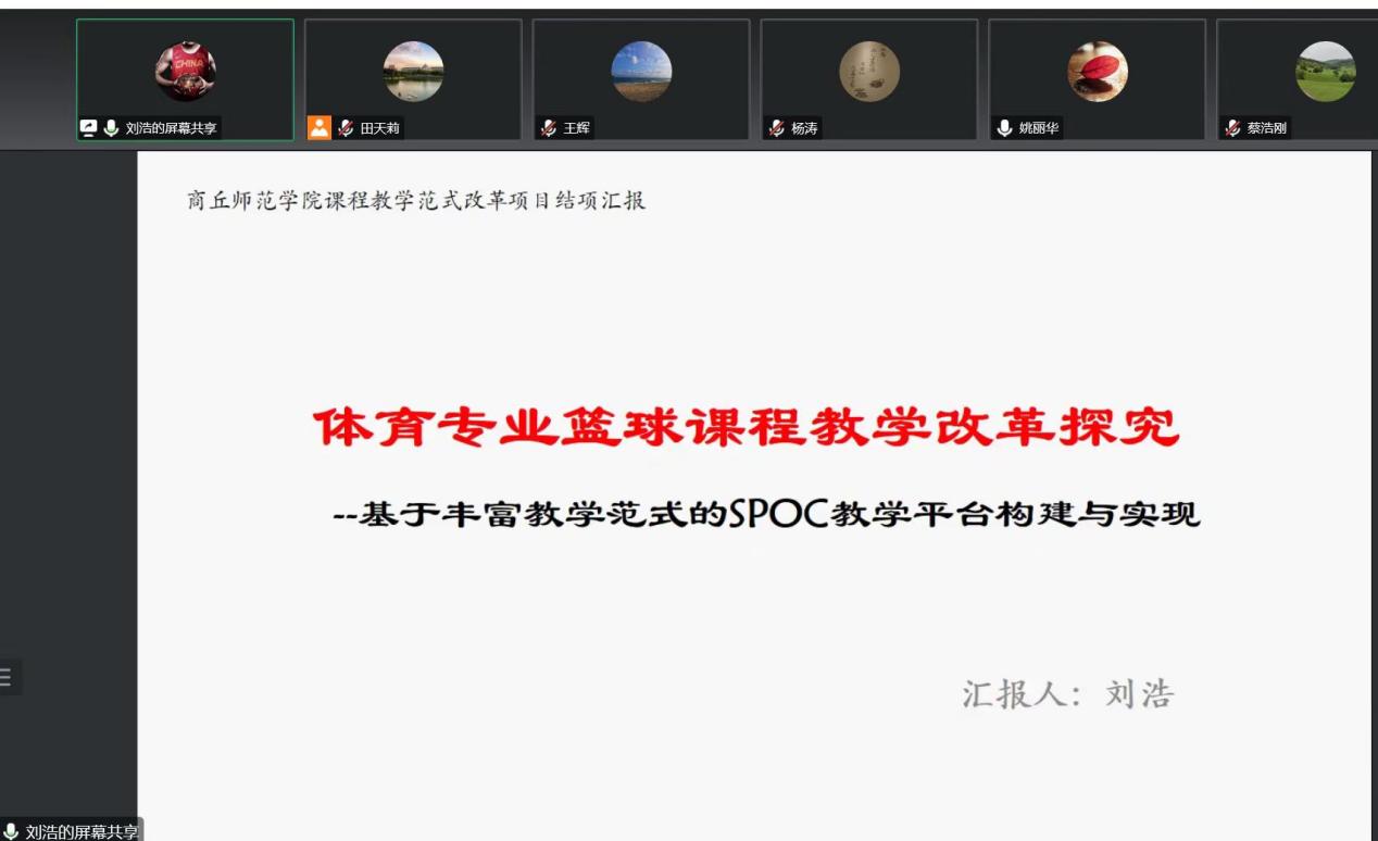姚丽华首先对公司结项要求进行了详细说明,接着蔡浩刚和刘浩分别对所担任的课程《体育测量评价》和《篮球》教学范式改革情况从改革思路、在线建课、教学过程、改革成效等方面进行了汇报。专家组成员一致认为两位老师在教学范式改革方面投入较大精力,在线建课资源丰富,做到了真改、真用,对员工的课前课后加强了监管,有效调动了学习积极性,切实提高了学习成效。