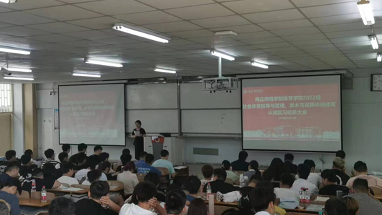 6月12日上午,太阳成tyc7111cc官网在智圆楼320召开2022级体育行业认知实习动员大会。太阳成tyc7111cc官网经理姚丽华,副经理蔡浩刚,实习组长肖思成,各小组成员、实习指导教师及全体2022级社会体育指导与管理、武术与民族传统体育专业员工参会。