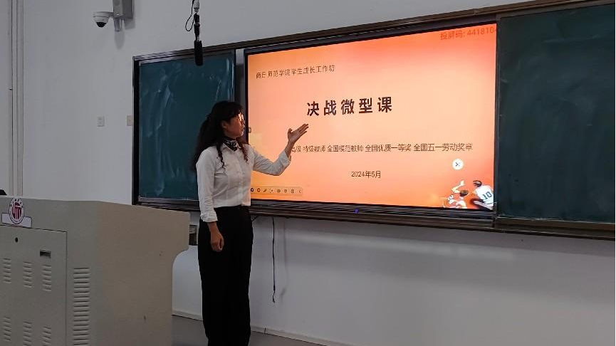 5月11日上午,太阳成tyc7111cc官网“互联网+”师范生成长工作坊于行方楼402教室成功举办“决战微型课”教学展示活动,本次活动由商丘市实验中学一线体育名师耿爱英指导。