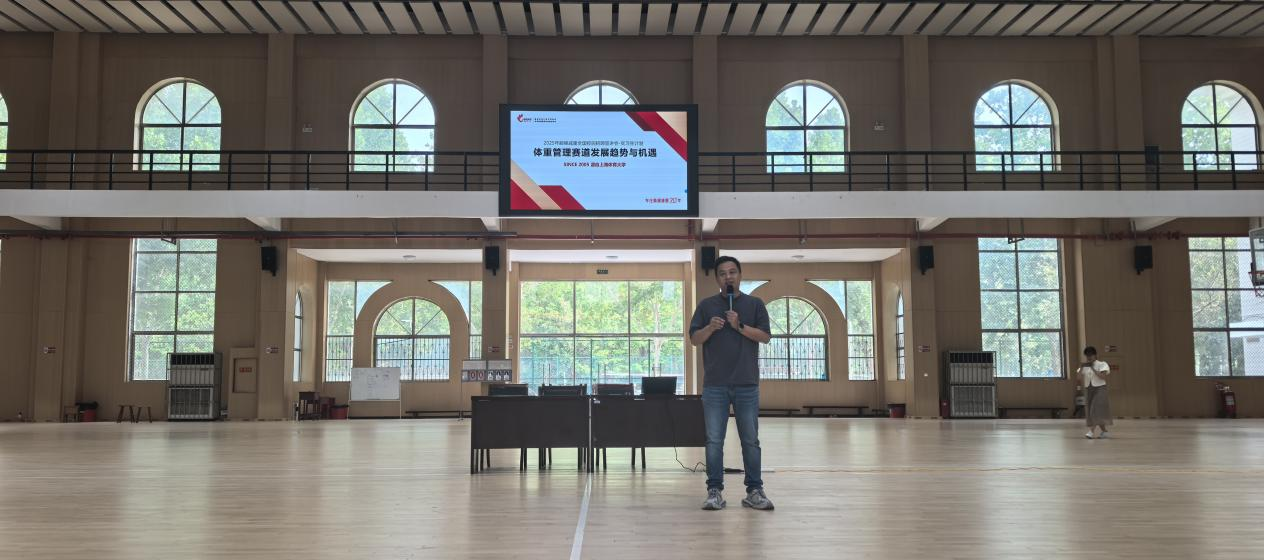 活动伊始,张家友警官作安全教育主题宣讲,通过案例分析专业解读校园生活、社交实践及网络安全的风险防控与应急处置策略,强调培养安全行为习惯和社会责任感的重要性,为校园稳定与个人发展提供坚实保障。随后,上海巅峰减重耿文豪经理分享体育健康产业创新实践与行业趋势,剖析体育专业在全民健身中的多元价值,为同学们提供一线行业洞察,深化产教融合实效。