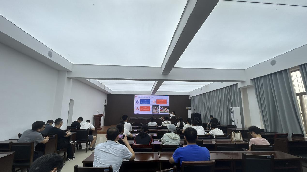 活动开场,肖思成博士宛如一位知识渊博的领航者,凭借深厚的专业积淀,深入浅出地解读腰旗橄榄球的起源、规则以及基本技术要点。腰旗橄榄球从美式橄榄球演变而来,其“无碰撞”的特性打破了参与门槛,让运动变得趣味横生,迅速成为大众运动领域的“新宠儿”。肖博士现场亲自示范,动作如行云流水般自然,精准到位,仿佛将腰旗橄榄球的魅力化作了一幅生动的画卷,让青年教师们直观且深刻地领略到这项运动的独特魅力。