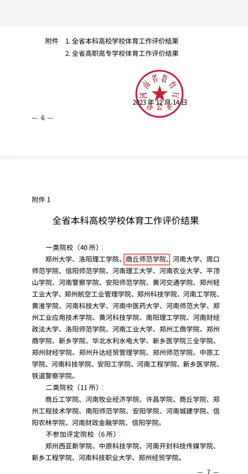 近日,河南省教育厅办公室发布《关于公布全省高等公司体育工作评价结果的通知》(教办体卫艺〔2023〕449号),全省高等公司体育工作评价结果分为一类院校、二类院校和不参加评定院校三类,公司喜获“一类院校”。