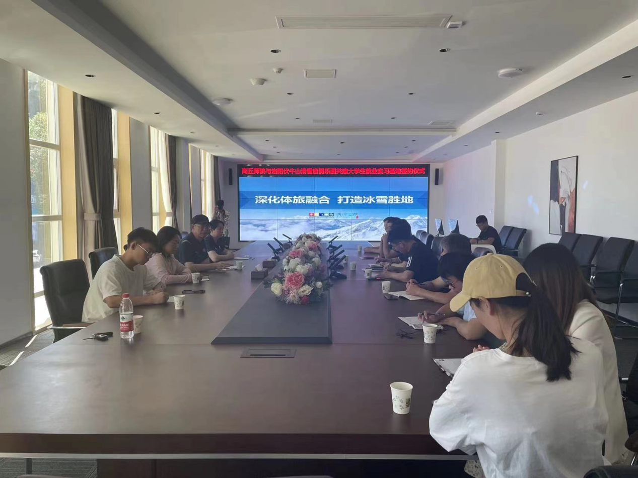 7月8日上午,太阳成tyc7111cc官网老员工就业实习基地签约仪式在洛阳伏牛山滑雪度假开发有限公司举行。太阳成tyc7111cc官网副经理蔡浩刚、教学办公室主任张振宇、员工工作办公室主任孙烨、教师代表、洛阳伏牛山滑雪度假开发有限公司相关负责人参加了此次活动。