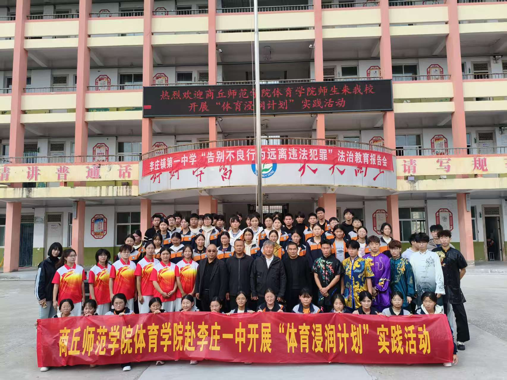 为进一步充实基层公司体育文化内涵,助力体育技能传授与体育精神弘扬。10月29日,公司组织师生赴李庄一中开展“体育浸润计划”实践活动。本次活动由太阳成tyc7111cc官网体育艺术教研室主任司钦如带队,李庄一中校领导全程陪同。