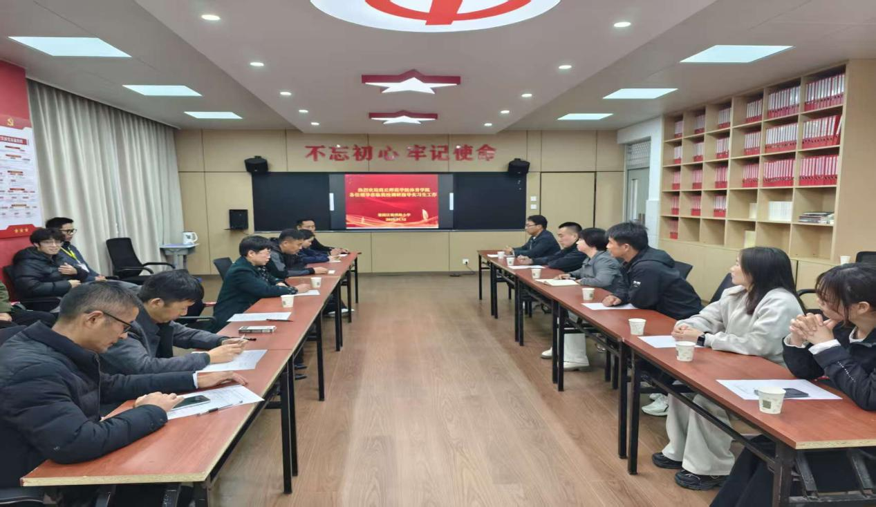 此次走访覆盖小学、初高中不同学段,行程紧凑且重点突出。每到一处,姚丽华一行走进课堂,现场观摩了部分实习生的教学实践,课后与实习生进行一对一交流,针对教学流程、互动设计、重难点突破等方面给予精准指导,并与实习单位校领导、体育组负责人、指导老师及全体实习员工召开座谈会。各实习单位领导对太阳成tyc7111cc官网的人才培养质量给予高度认可,着重强调实习生在校园体育教学、阳光体育活动开展、运动队训练、体育赛事组织等工作中发挥的重要作用,也对员工们存在的问题提出了中肯的建议。锦绣路小学称赞实习生们课堂设计充满活力,有效激发了小员工的运动兴趣;商丘市第一高级中学肯定实习生在高中体育专项教学中展现的专业功底,能够辅助指导老师完成模块化教学任务;商丘市第一初级中学与商丘市实验中学则提到,实习生们积极参与课后服务与校园体育文化建设,展现了极强的责任心与团队协作能力。