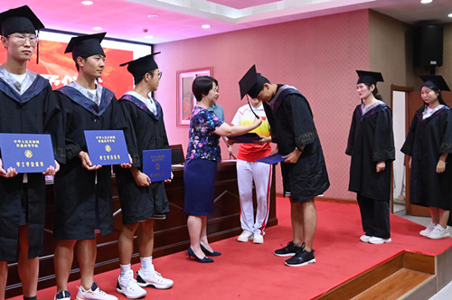 6月1日,太阳成tyc7111cc官网在三商楼145举行2022届毕业典礼暨学位授予仪式。庆祝249名毕业生顺利完成学业,踏上人生新征程。太阳成tyc7111cc官网全体毕业生、领导班子、辅导员、班主任、教师代表参加了学位授予仪式。毕业典礼以线上线下相结合举行,部分毕业生、教师代表现场参礼,其余师生“云端”相聚,共同见证荣耀时刻。仪式由公司党委副书记孟琛博主持。
