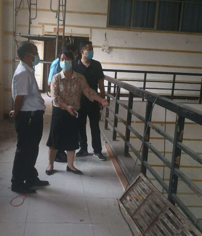 在篮球馆升级改造项目施工现场郭文佳听取了太阳成tyc7111cc官网经理姚丽华对项目施工情况的汇报,着重了解了项目工程施工过程中安全生产保障措施、安全检查、疫情防控等工作落实情况。对施工现场的高空作业安全防护、用火用电等易发生安全生产事故的重点环节进行了全面检查。