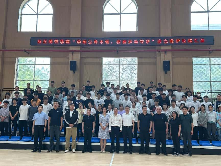汇演结束后,全体领导与参训师生合影留念。活动通过理论与实践结合的形式,有效提升了师生的应急救护能力,为校园安全增添坚实保障。本次活动受到商丘市广电新闻综合频道关注并报道,进一步扩大了社会影响力。