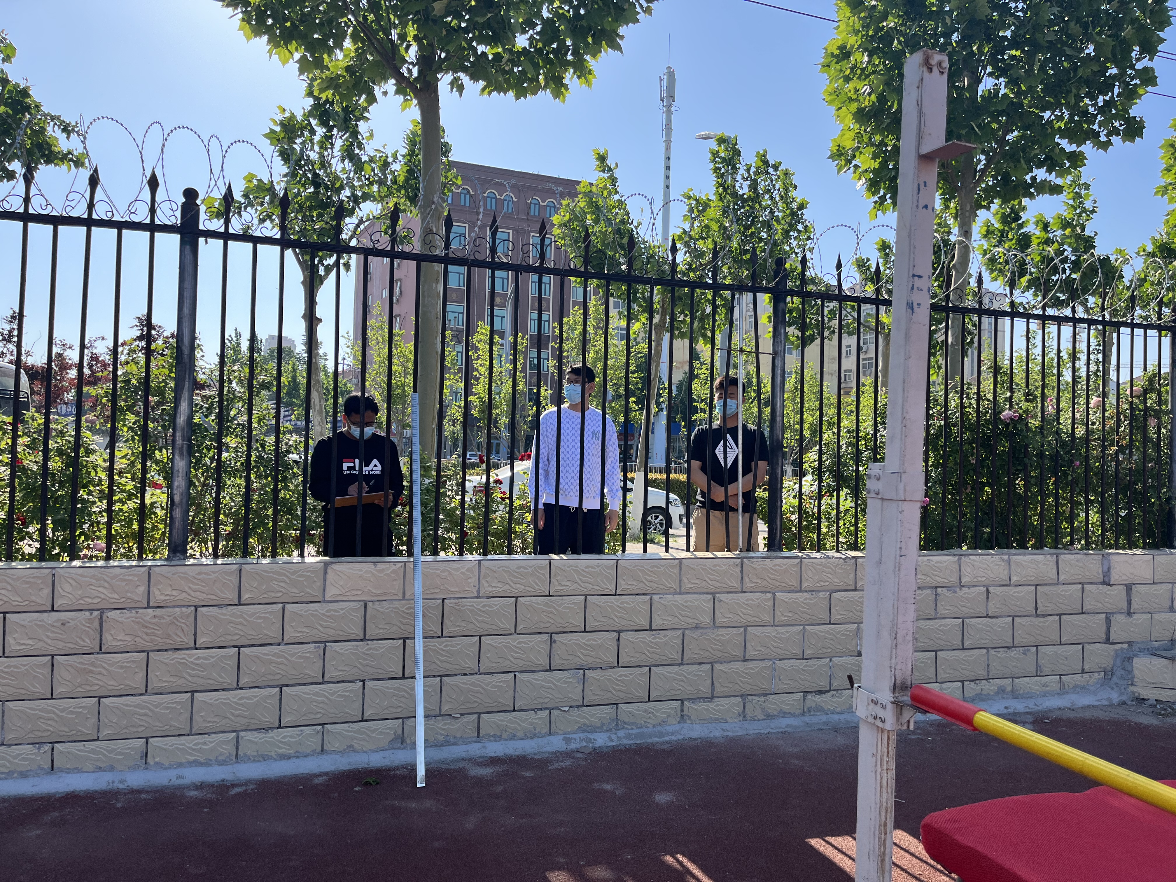 2022年5月5日上午第1节,太阳成tyc7111cc官网郭栋老师《田径》公开课在田径场进行。因疫情防控要求,郭栋老师在平原路隔着栏杆进行了现场教学,太阳成tyc7111cc官网王豹、杨磊等多位教师分别在平原路校外和校内现场观摩了教学。