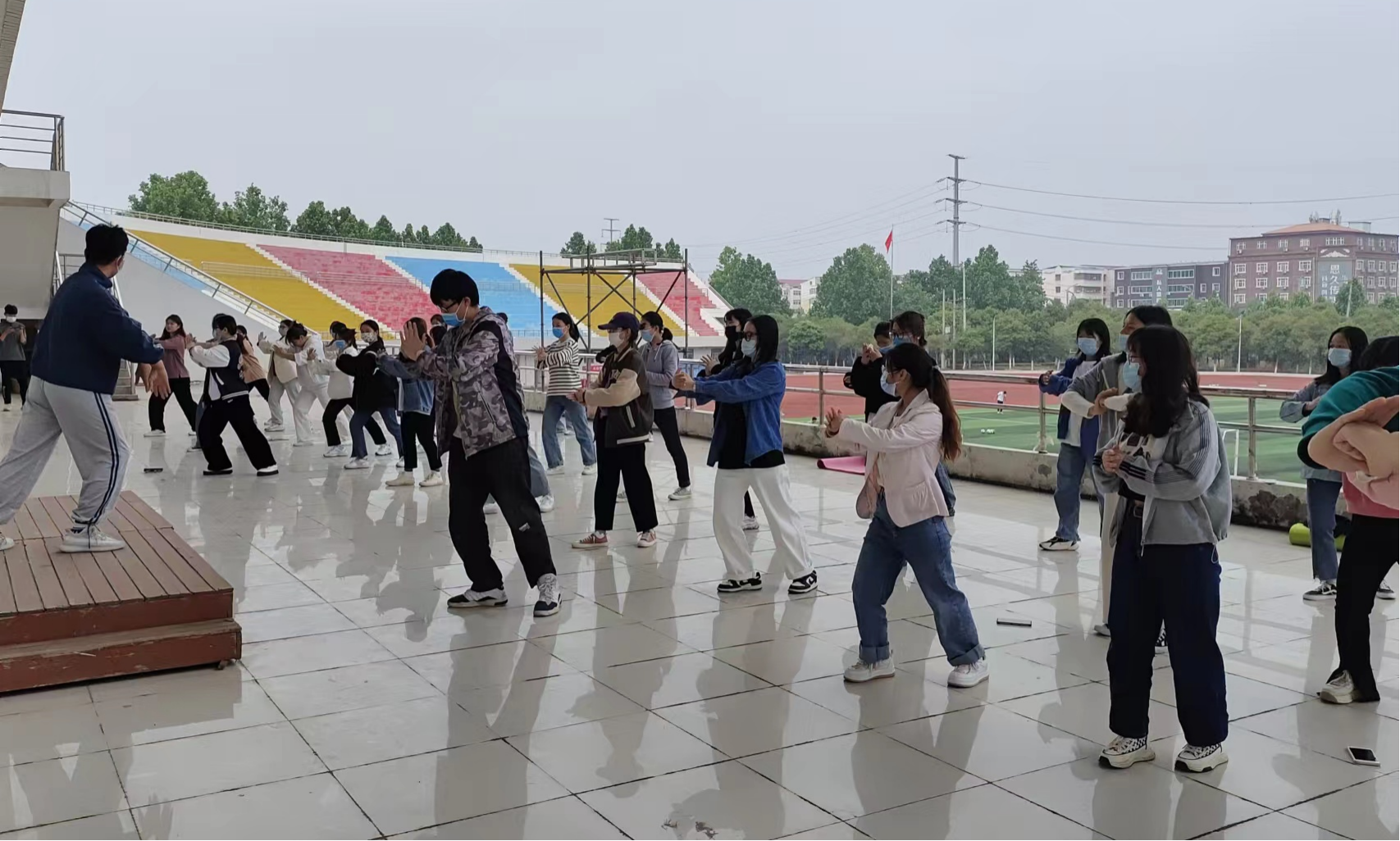 2022年5月10日下午,太阳成tyc7111cc官网马宁老师《健身气功·易筋经》公开课在梁园校区体育场举行。根据公司疫情防控要求,马宁老师公开课采用线上腾讯会议和线下课堂相结合的方式进行。