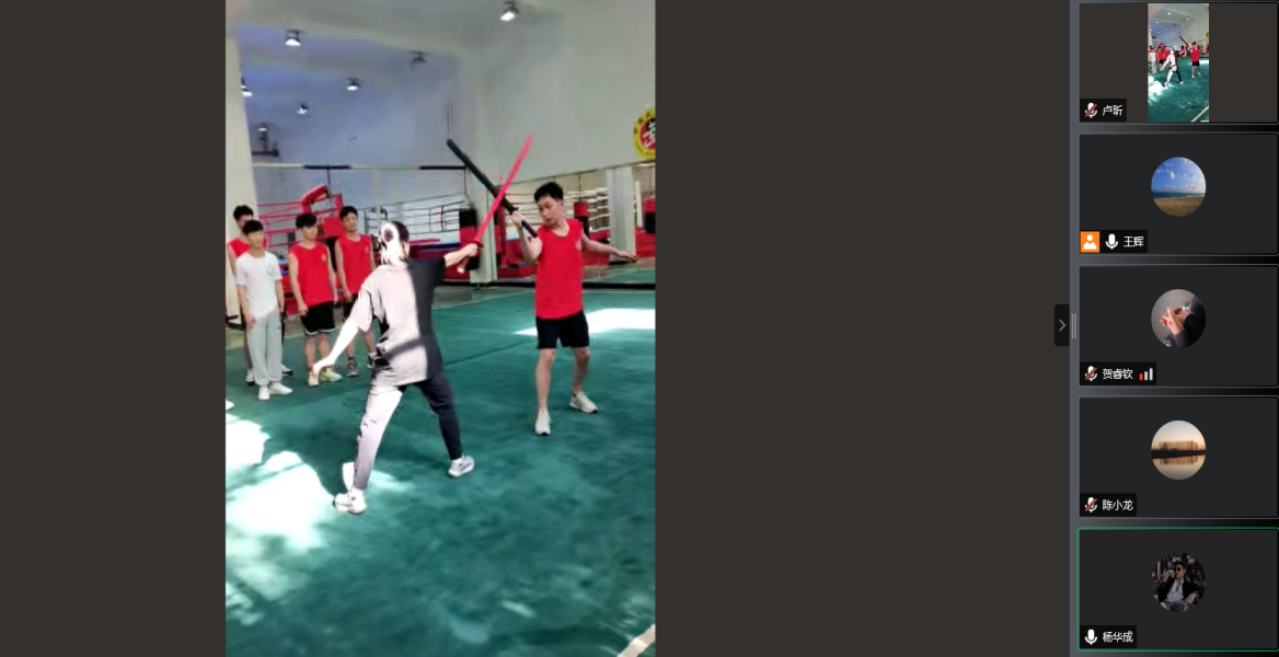 2022年5月5日下午第5节,太阳成tyc7111cc官网王辉华老师《散打专选四》公开课通过线上腾讯会议和线下课堂相结合的方式进行。