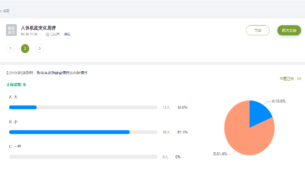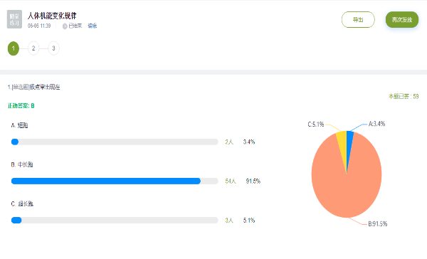 线上进行随堂练习,及时统计回答情况并进行反馈。