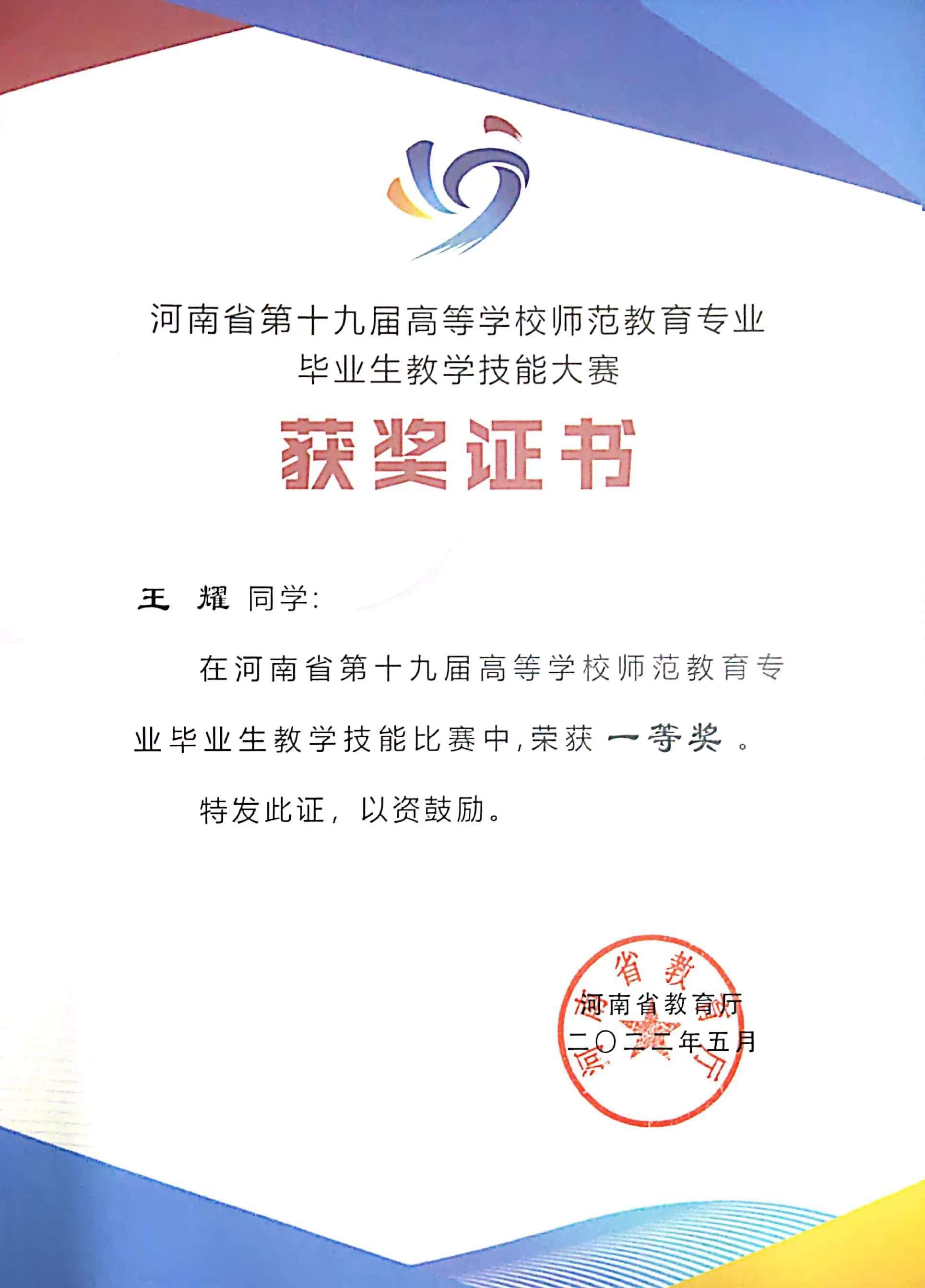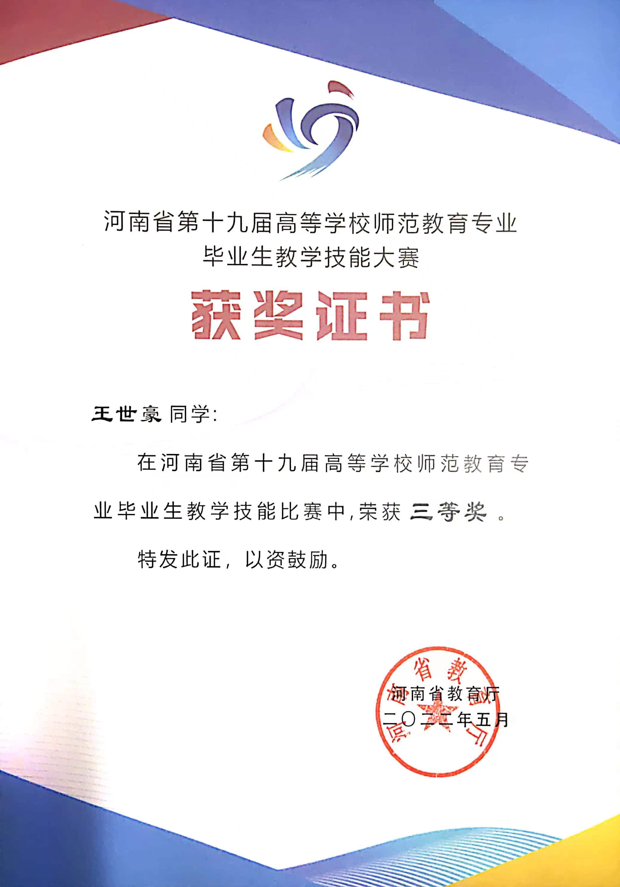 近日,河南省教育厅下发了《关于第十九届高等公司师范类专业毕业生教学技能比赛结果的公示》,该赛事是河南省师范生教学能力比赛最高赛事,公司体育教育专业师范生参加本次比赛,王耀同学荣获一等奖,黄伟斌、王世豪同学荣获三等奖,再次取得优异成绩,太阳成tyc7111cc官网教师呼美兰荣获优秀辅导奖。